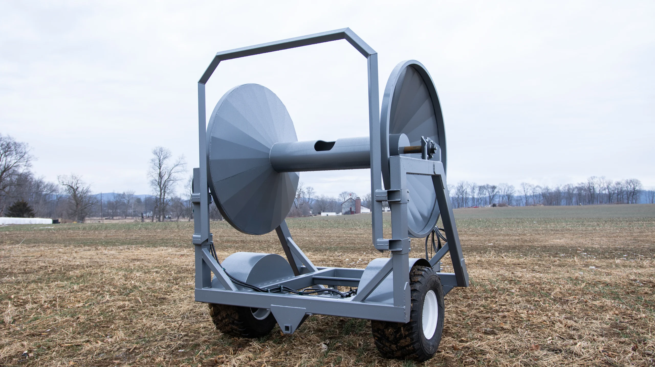 Skid Loader Reels streamline dragline operations with durable trailer, 3-point, or skid loader mounts that handle up to one mile of hose. This heavy-duty system slashes setup time and reduces soil compaction while significantly extending the life of your equipment.